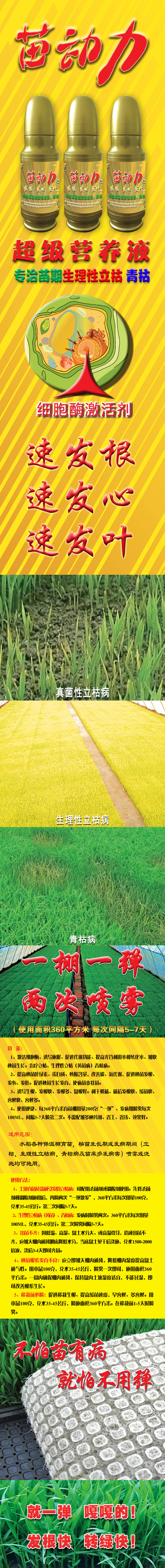 2、生(sheng)理性立枯病(黃苗)、青枯病(bing):髮病時(shi)噴霧兩次(ci)。360平方(fang)米每(mei)次用(yong)量100ML,兌(dui)水(shui)35-45公觔。第二次噴霧(wu)間隔5-7天。